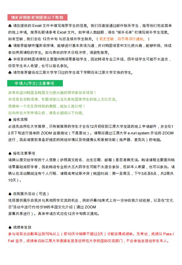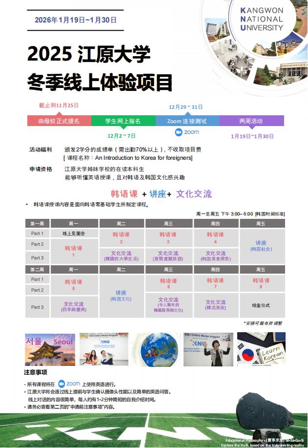 韩国江原大学2025寒假线上体验项目(详见附件)